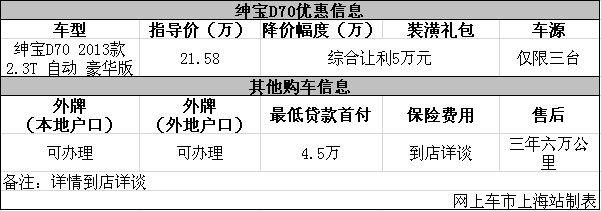 上海:北汽绅宝D70限量钜惠综合优惠让利5万元