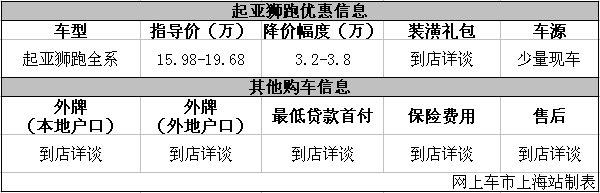 上海:起亚狮跑优惠让利3.2万起 只有少量现车