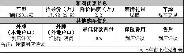 参与互动(0)日前网上车市上海站从上海美顺汽车销售服务有限公司了解到,目前该店雅阁2014款车型优惠出售,详情请见下表: