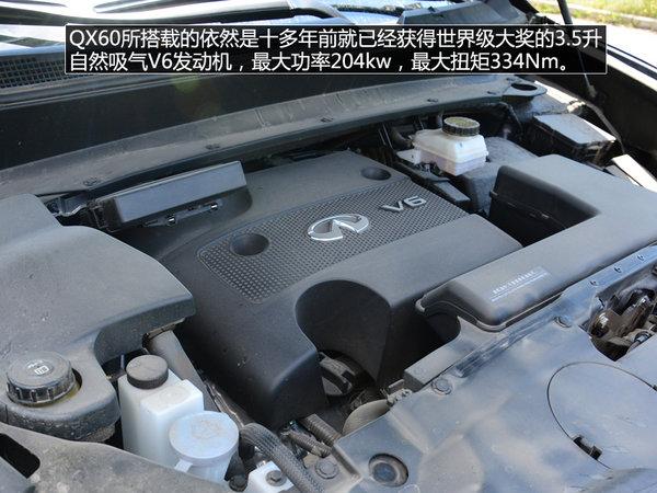 QX60所搭载的依然是十多年前就已经获得世界级大奖的3.5升自然吸气V6发动机,最大功率204kw,最大扭矩334Nm。受到超过两吨自重的拖累,QX60并不具备矫健的身姿,想要在滚滚车流中穿插并线实在是难为它,但如果换以温柔的驾驶方式对待,QX60则会表现出称职稳重的一面。
