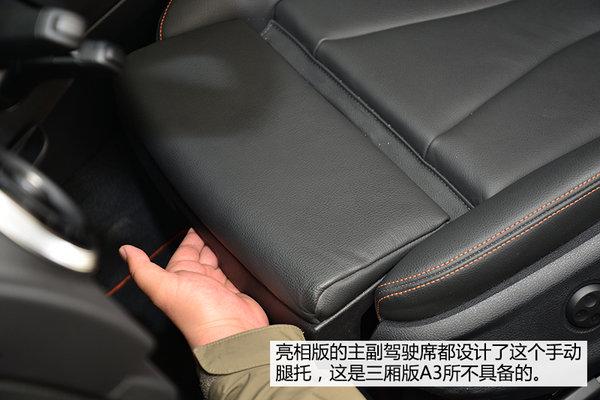 在结构上,三厢版和两厢版的A3内饰完全相同,但是颜色配置上却不相同。两厢版的奥迪A3内饰采用了黑色和橙色搭配,真皮包裹的部位都采用了橙色缝线,包括座椅和车门都采用了这两种颜色搭配,这也是为了突出两厢版车型的运动特性。