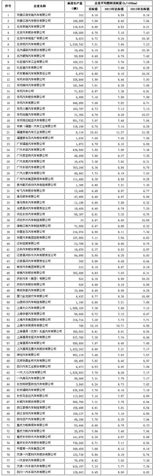 参与互动(0)近日,工信部发布公开征集《加强乘用车企业平均燃料消耗量管理》意见(以下简称《加强管理》意见),对无法达到平均燃料消耗量的企业,将停止新产品的申报,新建产能将无法通过。同时,工信部公布的数据显示,2013年共34家车企不达标。