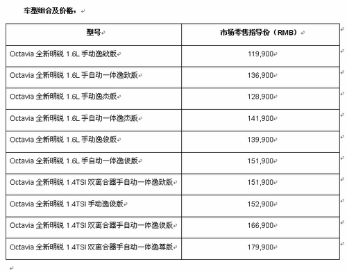 斯柯达新一代MQB平台Octavia全新明锐上市