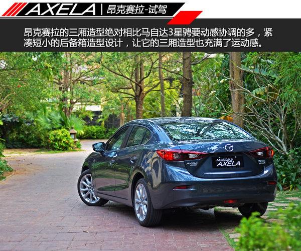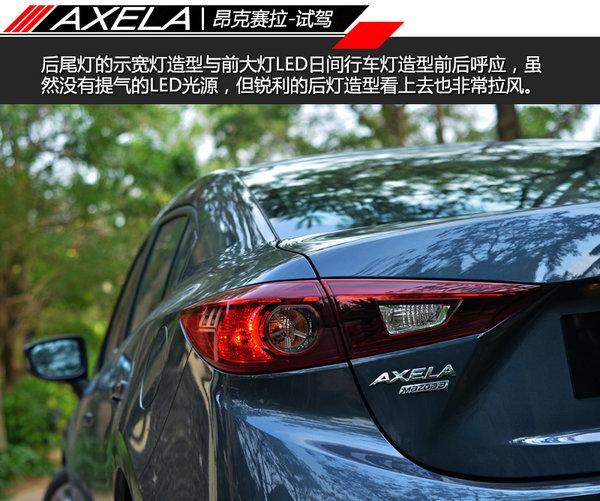 昂克赛拉的三厢造型绝对相比马自达3星骋要动感协调的多,紧凑短小的后备箱造型设计,让它的三厢造型也充满了运动感。后尾灯的示宽灯造型与前大灯LED日间行车灯造型前后呼应,虽然没有提气的LED光源,但锐利的后灯造型看上去也非常拉风。