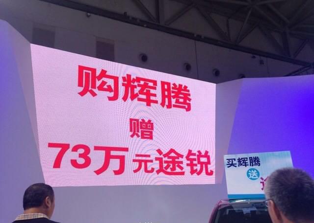 昨日,有网友在微博中爆料:今年青岛车展现场,大众进口车经销商打出“老板不在,全部瞎卖,购辉腾赠送73万元途锐”这样的噱头来吸引消费者。