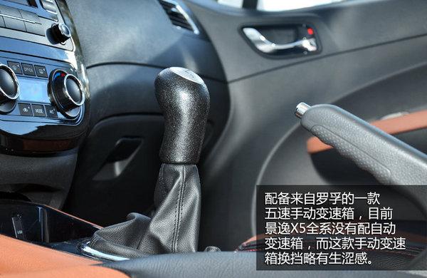 景逸X5的内饰做工从总体上还算可以接受,结合这款车的价位,我们不能对它的内饰材质有过分的要求。但可以改善的一点是,在中控区域的面板上,可以适当的增加一些装饰条,并对面板的纹理进行一下改进,这样从手感和视觉上都会更好。