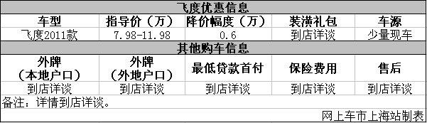 上海:广汽本田2011款飞度优惠六千 少量现车
