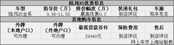 上海:陆风X5现优惠0.5万元 购车现车充足