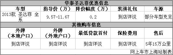 上海:华泰圣达菲全系现优惠0.2万元 现车充足