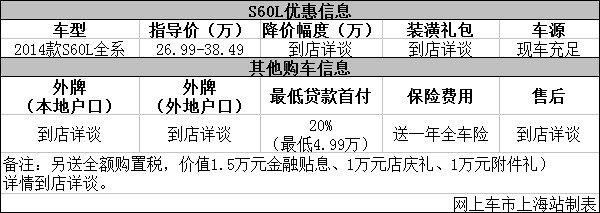 上海:沃尔沃S60L送全额购置税 送一年全车险