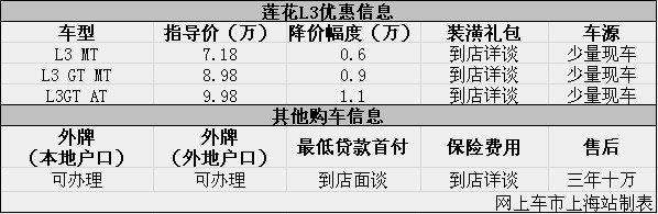 上海:莲花L3现优惠让利0.6万元起 现车充足