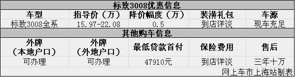 参与互动(0)日前网上车市上海站从上海炜业亨龙4s店了解到,目前该店标致3008优惠出售,详情请见下表: