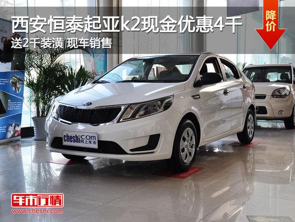 近日,据网上车市西安分站编辑从陕西东风悦达起亚西安恒泰4S店获悉,起亚k2现金优惠4千送2千装潢,现车充足,有意者不妨致电经销商或者到店了解更多信息。