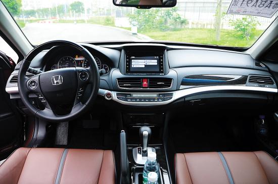 比较有特点的是,新歌诗图采用了一个新的内饰色调——深棕色。比起原来浅色调,这一改把档次感提了起来。新歌诗图的中控台没有太大变化,不过因为采用了新的智能屏幕系统,把按键数量大大减少了,许多功能设计成触摸式放在了屏幕两边。所以,看起来中控台比以前简洁了许多,但感觉如果太阳太猛的话,屏幕会容易反光。顺便一提,新歌诗图增加了在第九代雅阁上才有的功能——LWC盲点显示系统,在右侧后视镜上增加了一个摄像头,这样右转灯亮时可以在屏幕上看到右边的盲区视野。