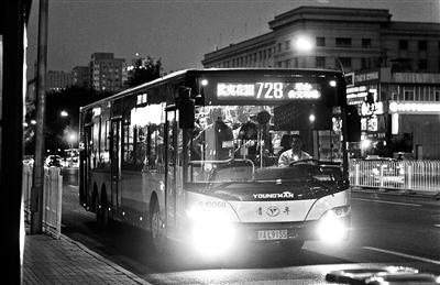 728路2000年9月30日开线,从通州武夷花园往西,最早时能一直到首钢所在地石景山老古城。后来西边的首末站改到了老山公交场站,全程43.15公里,票价4.5元。线路横跨通州、朝阳、东城、西城、海淀和石景山6个区,因此也被网友戏称为“京城最牛公交”。(记者 李铁柱)