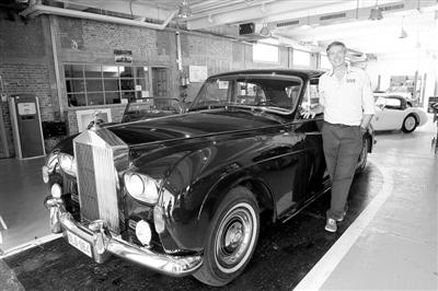 图为在比利时北部城市安特卫普郊外的一家“老爷车概念店”,店主扬·克里斯蒂安站在一辆劳斯莱斯汽车旁。