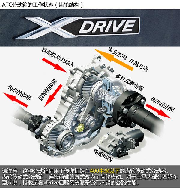 宝马的四驱是怎样在工作的,要了解这个问题前,我们首先要简单了解一下装配在华晨宝马3系/3系Li/5系上的四驱系统拥有怎样的结构和工作原理。齿轮传动式分动箱,连接前轴的方式改为了齿轮传动,其他地方大同小异。对于宝马X系大部分车型来说,搭载这套xDrive四驱系统赋予它们不错的公路性能和不俗的越野性能。xDrive四驱系统可以只能快速地进行前后轴的动力分配,不过对于同轴两侧车轮的动力分配则无能为力。由于前后轴均采用开放式差速器,遇到交叉轴情况时,也只能依靠电子制动来辅助。而此次上市的华晨宝马3系/5系 xDrive车型也正是装配了该种分动箱。
