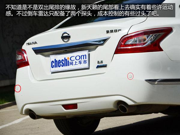 侧面的线条设计值得称赞,十分简洁却又让整个车身看上去舒展、修长。车身侧面及尾部均带有镀铬装饰条,甚至在LED尾灯内部都设计了镀铬元素。不知道是不是双出尾排的缘故,新天籁的尾部看上去确实有着些许运动感。
