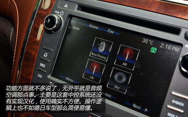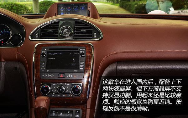 内饰的变化不大,和老款相比,也没有多少质的飞跃。但别克善于通过细节的点缀来增加豪华感,这一点在昂科雷身上得以应验。通过真皮包裹和木纹饰条的运用,营造了非常显档次的商务豪华感。但细节的处理依旧不够有耐心,边角和缝隙都需要进一步完善和打磨。大而无当、大大咧咧可不是国人的审美诉求。