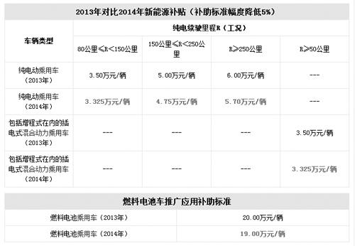 2013年2014年新能源车补贴对比