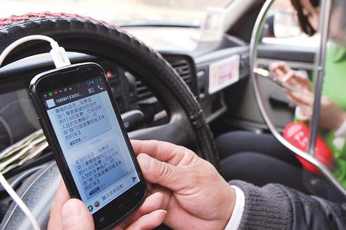 5月27日,中国交通运输部公布《关于促进手机软件召车等出租汽车电召服务有序发展的通知(征求意见稿)》,提出加快实现出租汽车服务管理信息共享,严格驾驶员终端软件发放与使用管理,并加强手机软件召车服务市场监管。图为太原出租车司机查询乘客使用打车软件的付款信息。