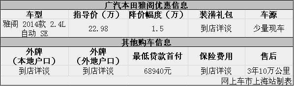 上海:本田雅阁现优惠让利1.5万元 购车现车少