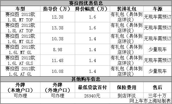 上海:赛拉图优惠1.4万元起 部分车型少量现车