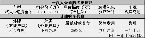 参与互动(0)日前网上车市上海站从上海豪捷4s店了解到,目前该店速腾优惠出售,详情请见下表: