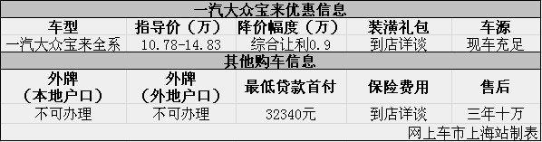 上海:一汽大众宝来现综合让利0.9万元 现车足