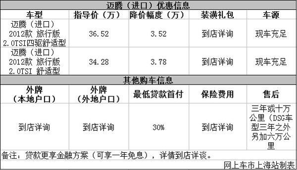 上海:进口大众迈腾优惠3.52万元起 有现车