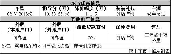 上海:现本田CR-V部分车款优惠1万元起 有现车
