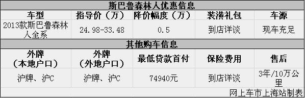 上海:斯巴鲁森林人现优惠0.5万元 现车足