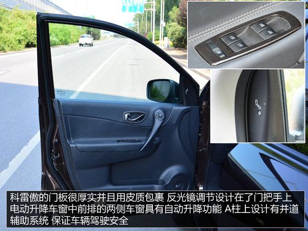 新科雷傲在内饰上并无明显变化,中控台布局简洁大方、做工细致,整个中控台被皮质材料覆盖。遗憾的是新款科雷傲取消了那个可以看到后排的沟通镜。仪表板、中央控制面板与车身固定处的接缝依旧十分的均匀,配色方面采用了全黑配色看上去更加运动年轻化。方向盘集成了定速巡航、影音控制的等多功能按键,但是开关却在中控台下,这个设计很独特。