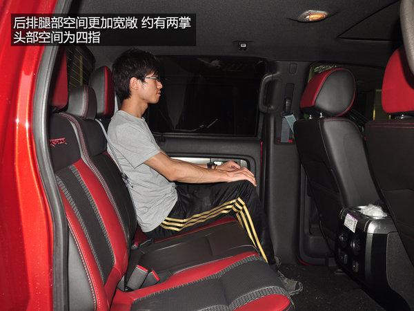 编辑点评:本次实拍车型与老款车型区别不大,不过新的宝石红色确实更讨人喜欢。内饰部分的红黑相间座椅也是一大亮点,使整个内饰的运动感提升不少。美式皮卡对于越野爱好者来说有其不可替代的优势,眼下针对这类皮卡的改装市场也非常火爆,喜欢的朋友可以致电经销商咨询更多详情。