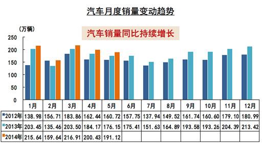 5月汽车产销分别完成197.58万辆和191.12万辆,比上月分别下降4.4%和4.6%,比上年同期分别增长11%和8.5%。1-5月我国汽车产销分别完成992.80万辆和983.81万辆,比上年同期分别增长9.4%和9%,增速比上年同期分别下降4.1和3.6个百分点。