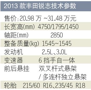 锐志商务气息不如君越、雅阁、帕萨特来得明显,造型也不如蒙迪欧、阿特兹来得生猛,但锐志能在市场中立足,靠的便是前置后驱和人车合一的操控性。而且,当锐志进化至2013款时,造型也一改以往温和,变得活力四射。留意其前脸,尤其是前车灯,很能感受到凶狠与锐利。总的来说,锐志是款可玩却又不是那么追求极限的车型,半路出家玩漂移,这车是不错的选择。(文/图 周伟力)