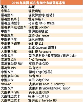 近日,J.D.Power发布了2014年度美国新车质量报告(IQS)。其中,保时捷超越雷克萨斯成为冠军,而现代也进步神速,超越丰田排进前五名,与此同时,在各细分市场的车型冠军中,现代集团占据5个席位,成为进步最快的汽车品牌。