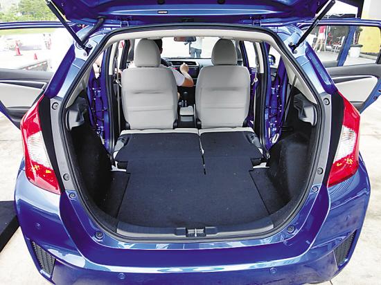 新飞度对车内空间的极度利用并不是靠车身外围尺寸。这里重点说一下新飞度相当夸张的后排空间,用厂家宣传册上的话来说就是“能达到B级车的水准”,一位身高1.75米的朋友坐上去,膝盖离前排座椅还有两个拳头的距离,与上代飞度相比,这一代飞度的空间只是略为增加,但它后排座椅的乘坐舒适性却大幅提升。前两代飞度的后排座椅或多或少都存在角度过于平直、座椅单薄等问题,而新飞度将后排座椅角度调得更加倾斜,并增加了座椅的厚度,使得乘坐角度更合理、座椅承托力更佳。另外,本田将两侧的两个座位设计得略为凹陷,这也是提升乘坐舒适性的一个手段。