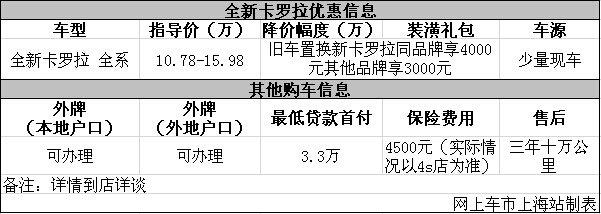 上海:一汽丰田卡罗拉购车送置换补贴最高4千