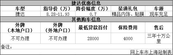 参与互动(0)日前网上车市上海站从上海一汽汽车服务有限公司了解到,目前该店大众捷达优惠出售,详情请见下表:
