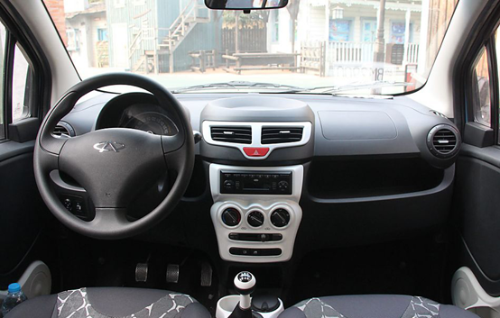 内饰方面,新QQ延续了老款的设计理念,黑色的内饰配色烘托出运动的氛围,可更换颜色的中控面板增添时尚感,突出了年轻时尚的风格。稍微有点不足的是中控台仍采用了硬塑料,手感不太好,但好在做工比较精细,质感不错,毕竟作为一款代步车,要求也不能太高。