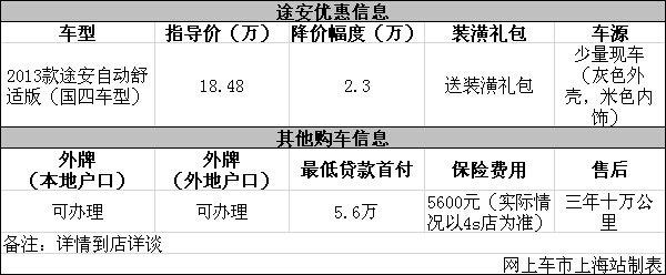 上海:13款途安自动舒适型优惠2.3万 送装潢礼