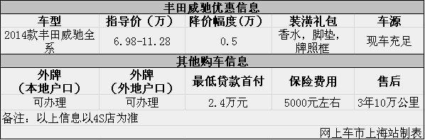 上海:丰田威驰现优惠让利0.5万元 送装潢礼