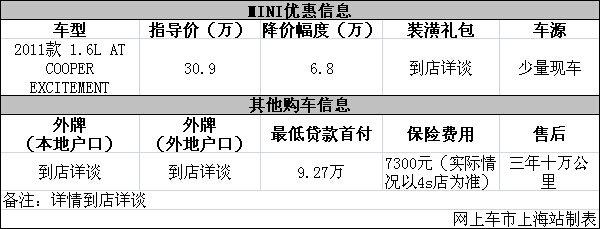参与互动(0)日前网上车市上海站从上海宝诚MINI4s店了解到,目前该店11款经典MINI优惠出售,详情请见下表: