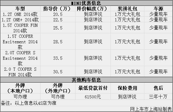 上海:MINI现暂无优惠让利 送一万元大礼包