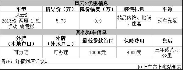 上海:奇瑞风云2现优惠降价9000元 送装潢礼包