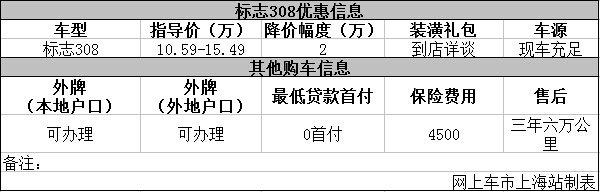 上海:东风标志308现金优惠降价2万元现车充足