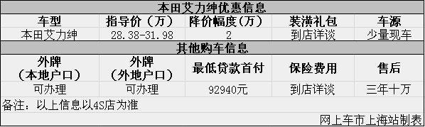 上海:本田艾力绅现优惠让利2万元 少量现车