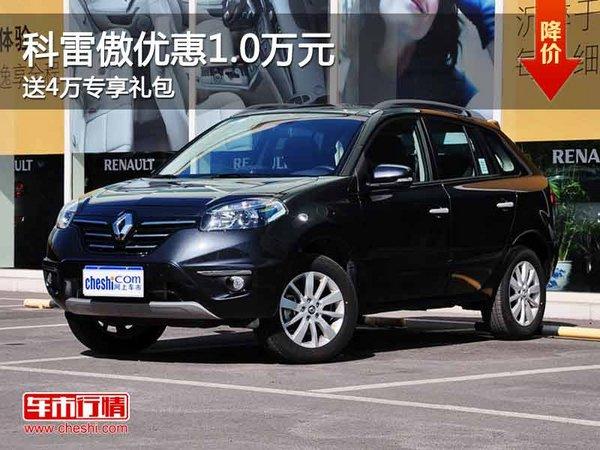 近日,编辑从重庆地区雷诺经销商处获悉,2014年07月15日-2014年07月20日,科雷傲有少量现车在售,购车优惠1.0万元并送4万专享礼包,感兴趣的朋友不妨进一步关注一下。具体优惠信息如下: