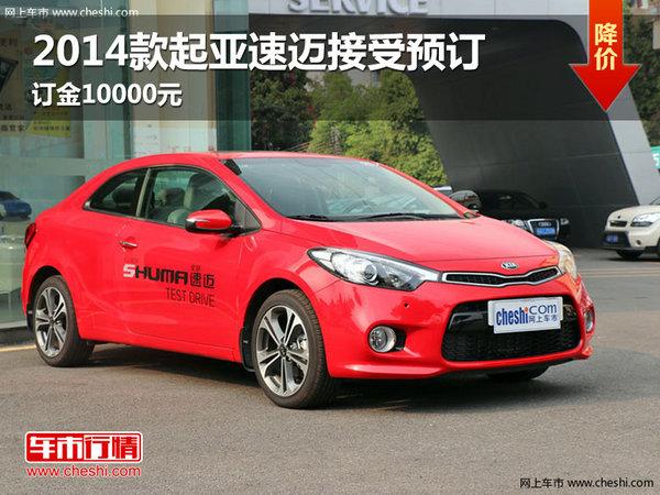 近日,网上车市编辑从进口起亚长春4S店获悉,吉林同和4S店2014款速迈接受预订,预订需交一万元订金,提车周期为2个月。